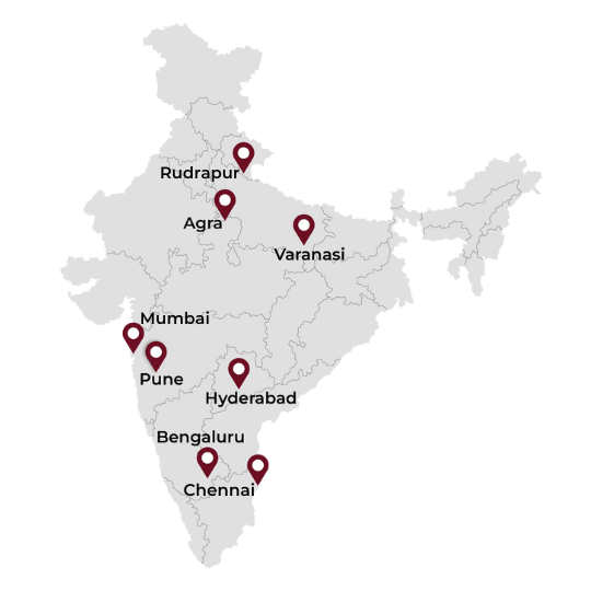 Hyderabad Mumbai Pune Bengaluru Agra Rudrapur Varanasi Chennai